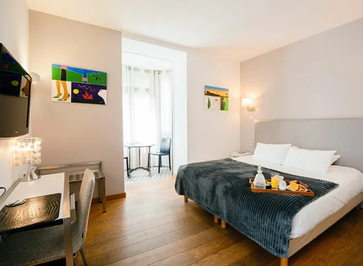 Au milieu d’un parc arboré, les 15 chambres dont une PMR et deux familiales ont été décorées et meublées avec goût dans un style contemporain. Spacieuses, lumineuses, confortables, elles s’ouvrent sur le parc ou les sommets pyrénéens.