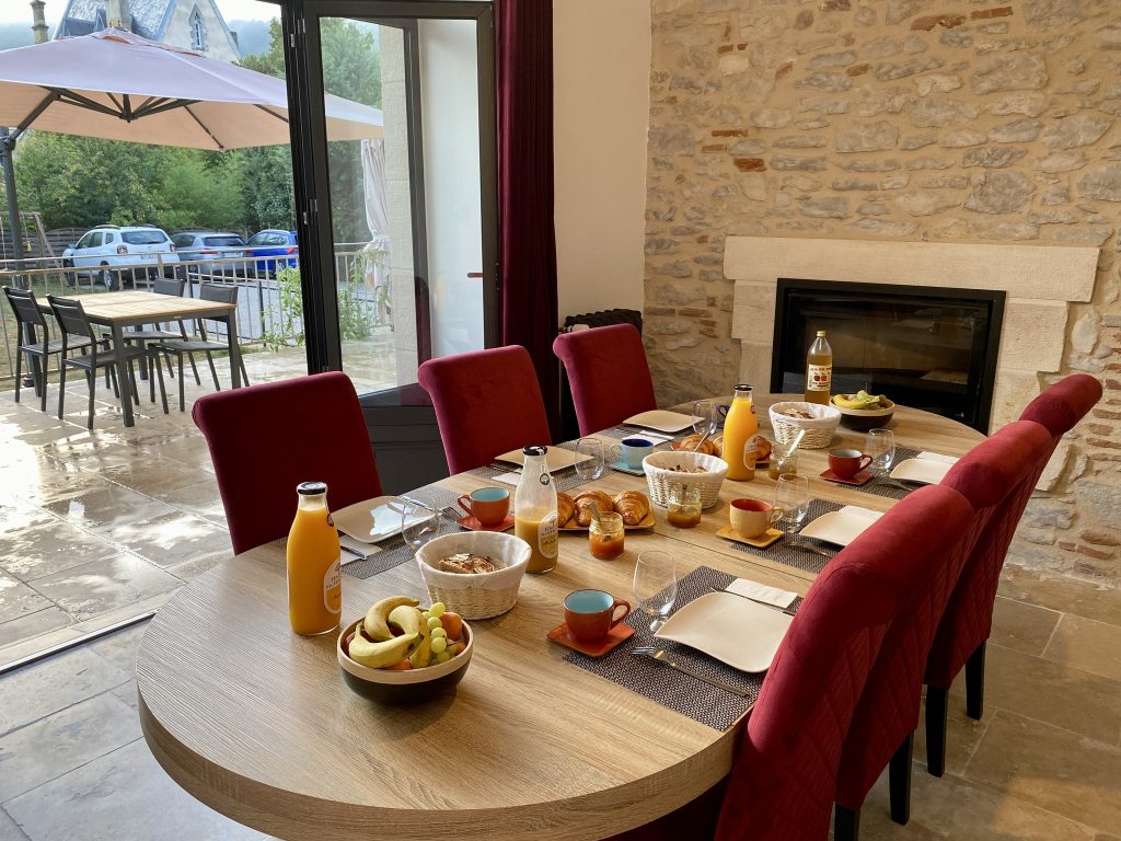 Les petits déjeuners mettent à l’honneur les saveurs locales et les confitures maison avec les fruits du jardin : kiwis, mirabelles, cerises.